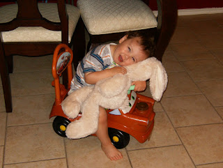 And here he is in all his rascally glory. Cuddling his bunny while on his tow-truck. After hearing me tell this story, my mom said that Jack is going to give me gray hair. Hope not, but probably so! Oh well, I'm happy that he is such an adventurous and courageous boy.